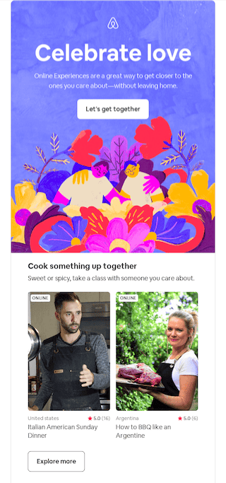 Email is also a useful tool for marketing your event because all of the people on your list are likely to have some interest in your business already. Here’s a great example from Airbnb: