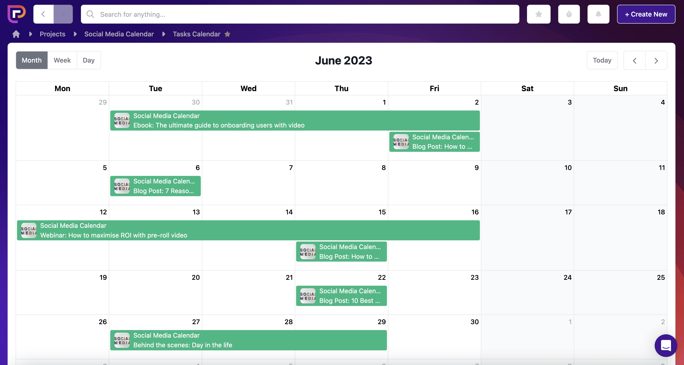 Marketing your virtual event is a huge undertaking, but Project.co can make it a lot easier. There’s no limit to the number of projects you can open on our platform and we have a variety of free templates, including a social media calendar and a content calendar, that come pre-populated with customisable tasks.